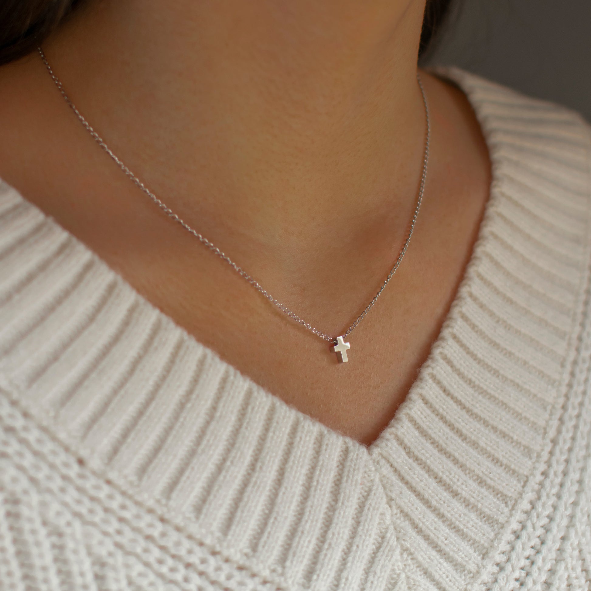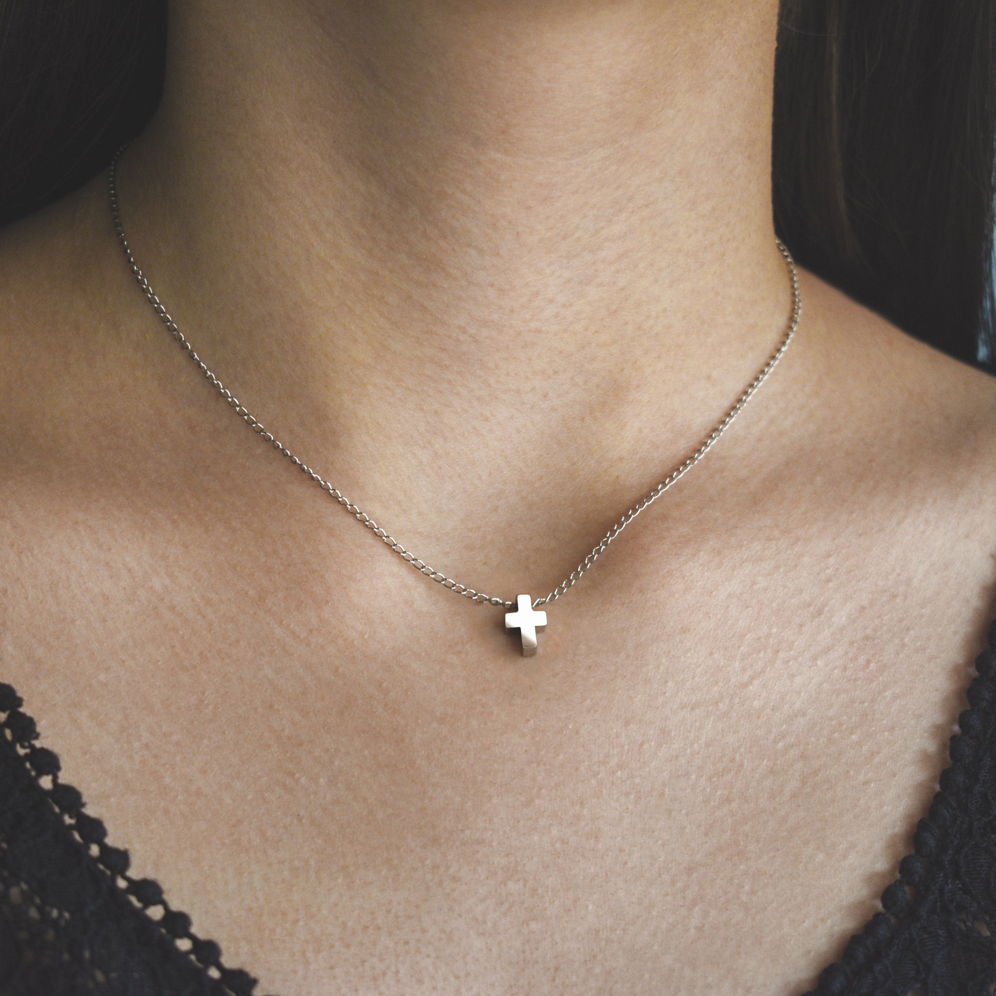 Elegantna i glamurozna ogrlica od nehrđajućeg čelika sa malim križićem će nadopuniti sve vaše modne priče! Mali križ, svega manji od 1cm čini ovu ogrlicu decentnom i otmjenom. Dimenzije same ogrlice su savršene, te ogrlica nije suviše spuštena, a i nije suviše uz vrat.